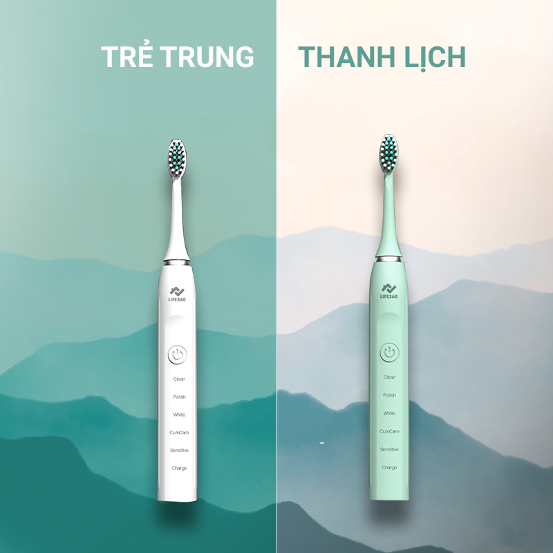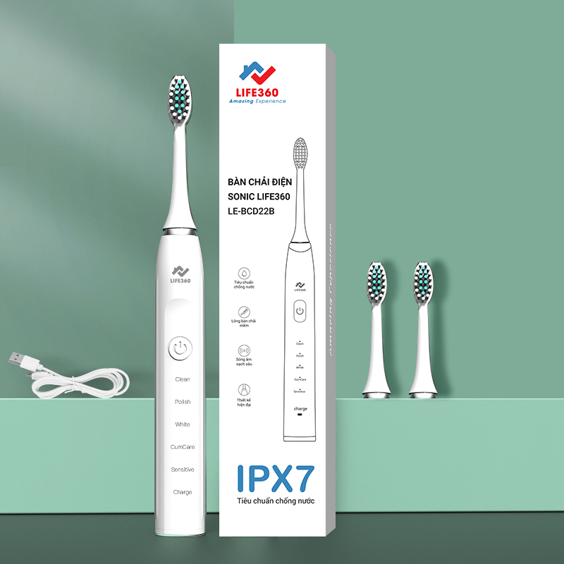 • Bàn chải điện sonic Life360 LE-BCD22B với chức năng chải êm ái, trọng lượng nhẹ chỉ 55g.