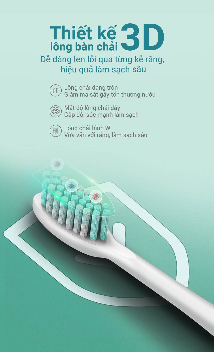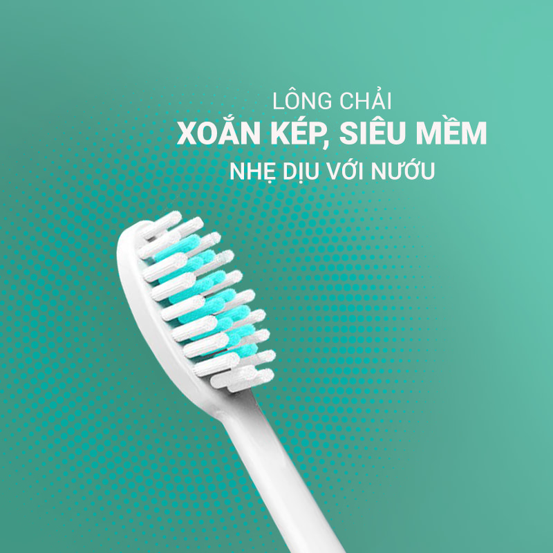 • Thiết kế lông bàn chải 3D xoắn kép, siêu mềm, không gây tổn thương nướu