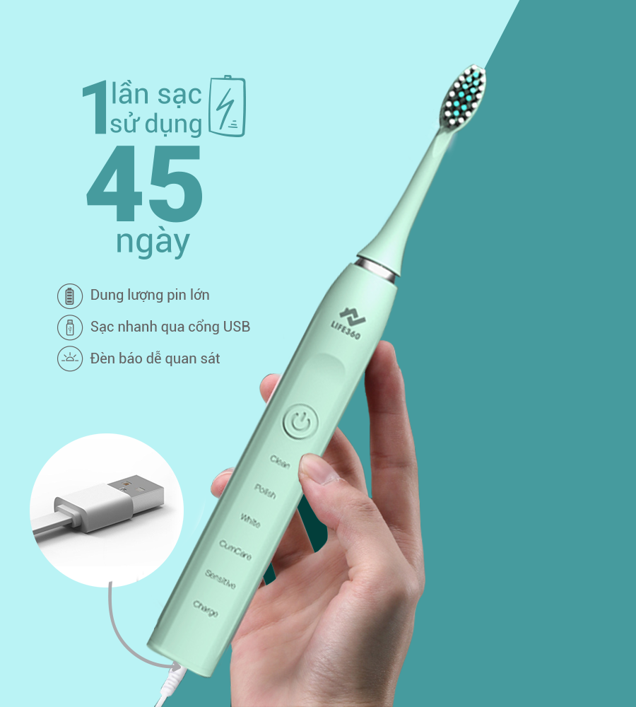 Cáp sạc USB bàn chải điện sonic Life360