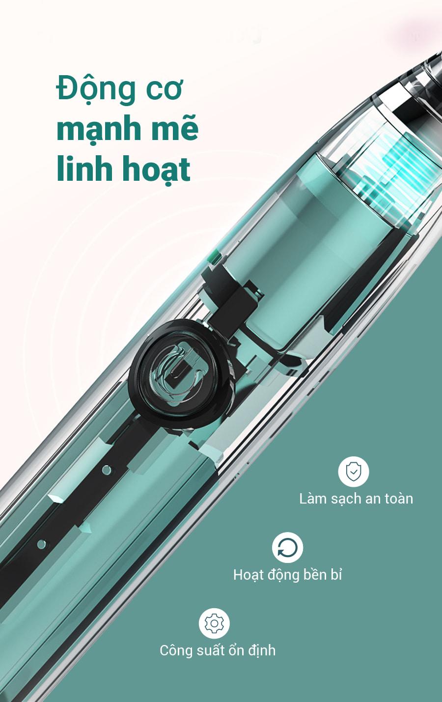 • Thiết kế bàn chải điện nhỏ gọn tiện ích, màu sắc tinh tế, hiện đại