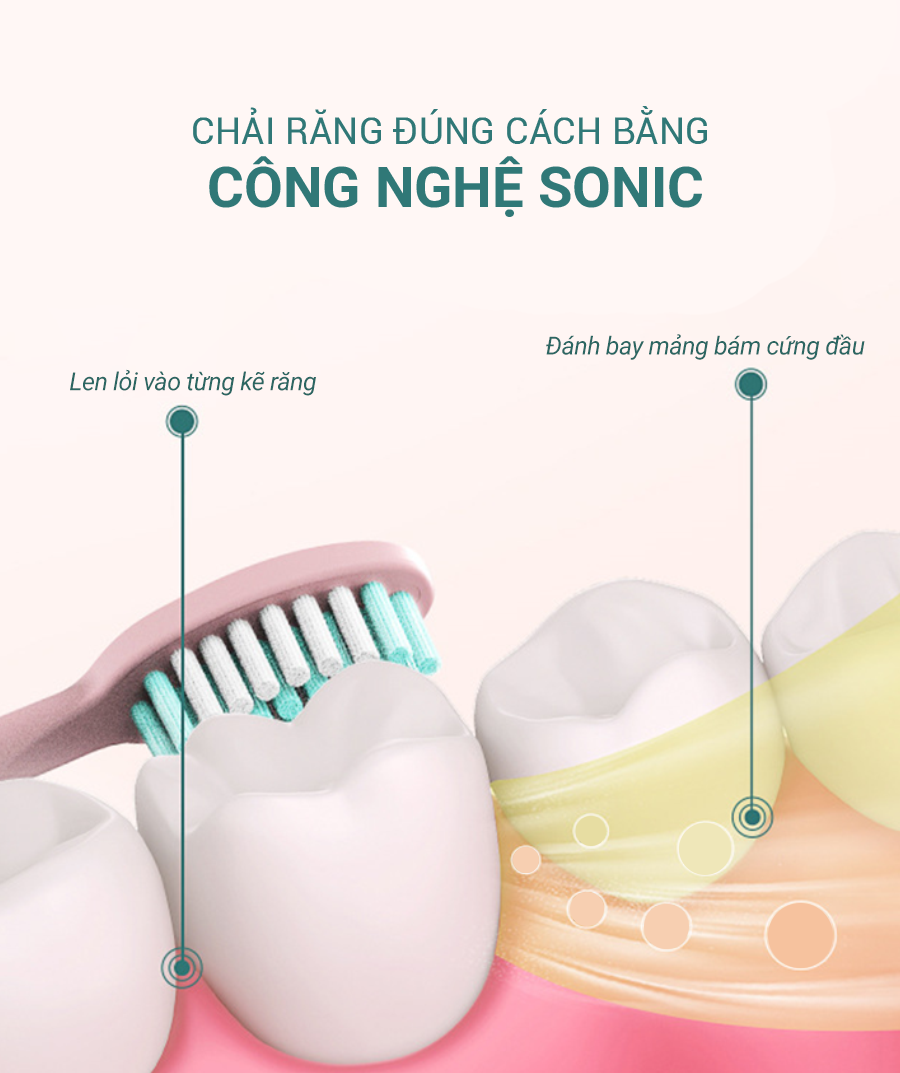 • Sử dụng công nghệ sóng âm Sonic làm sạch sâu, dịu nhẹ cho nướu